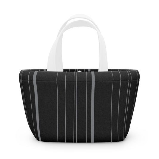 Black Pinstripped Lunch Bag - Elegant and Minimalist Neoprene Insulated Purse Lunch Box